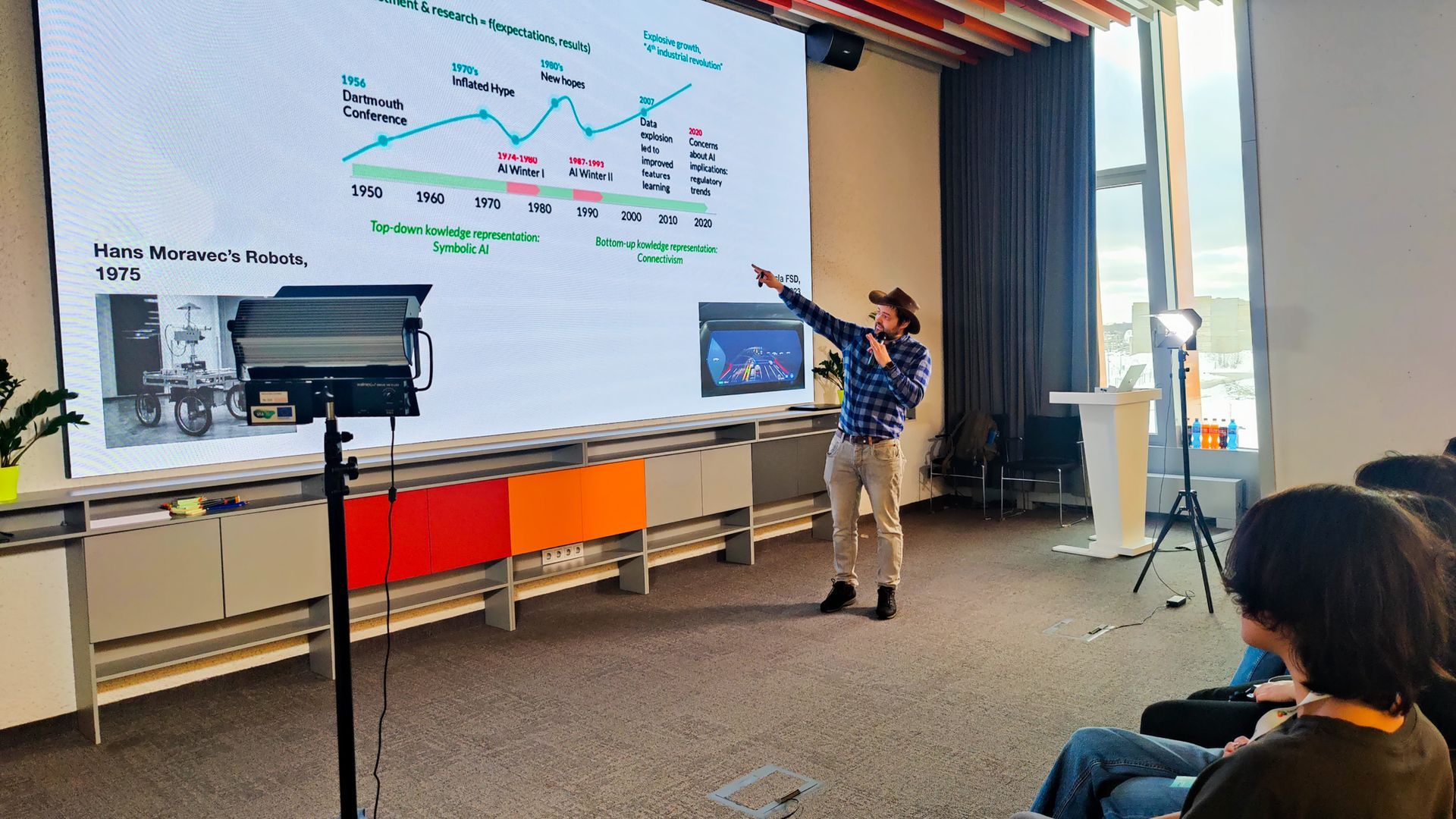 Jaunieši vecumā no 15 līdz 20 gadiem tika aicināti pieteikties hakatonam “AI Biznesa starts”, atklājot un attīstot idejas par uzņēmējdarbības uzsākšanu ar mākslīgā intelekta palīdzību. Hakatonā notika spraiga cīņa par galveno balvu 1000 eiro, ko ieguva komanda, kas visprecīzāk spēja izstrādāt un žūrijai pamatot savu ideju.