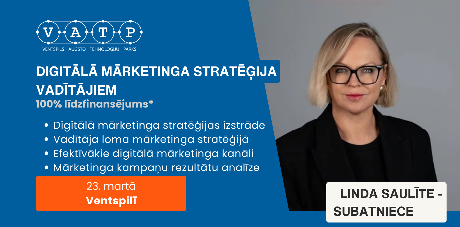 Norises vieta: Ventspils Augsto Tehnoloģiju parks 1 (A1 ieeja 2. stāvs)