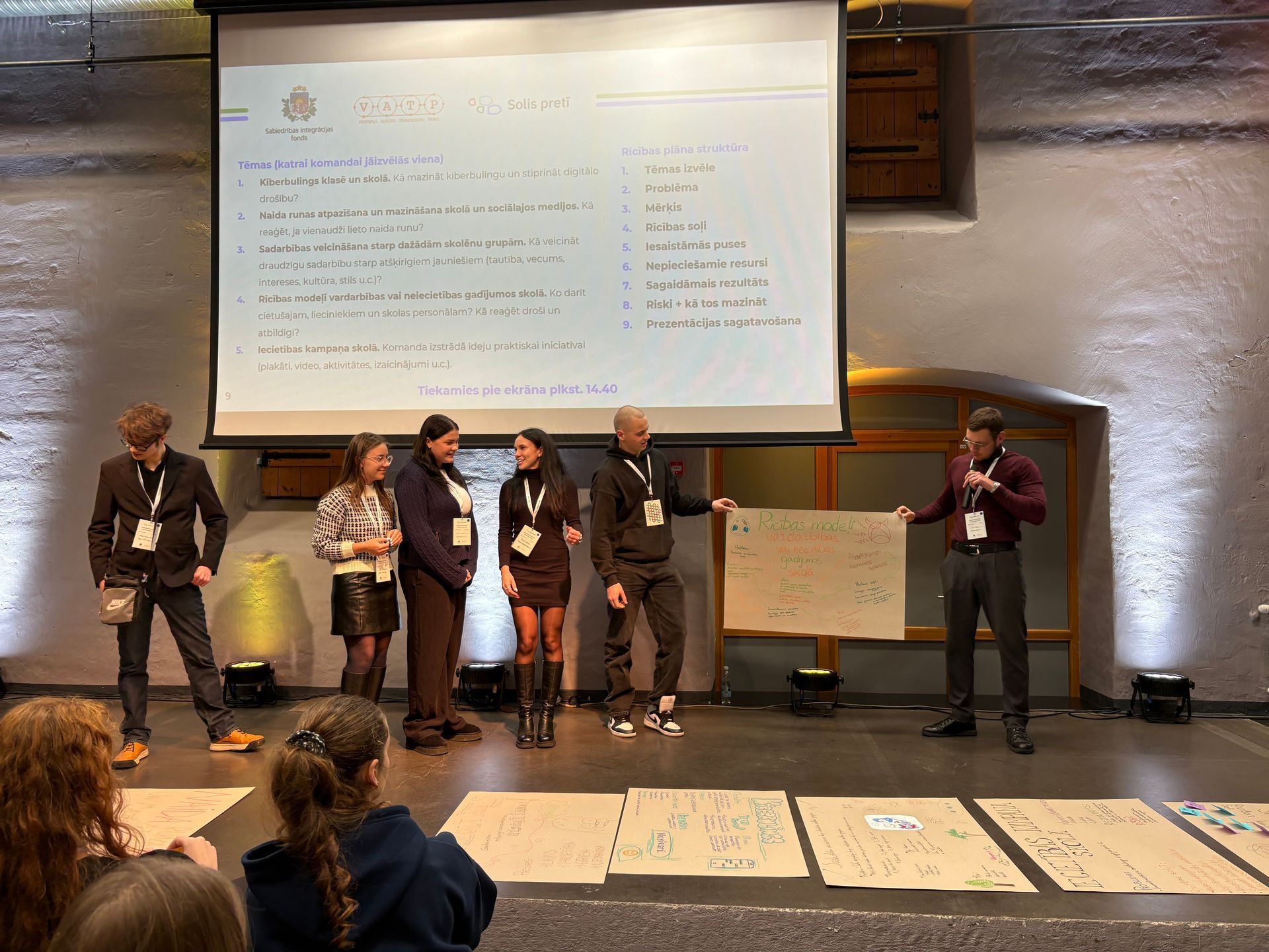 Noslēguma diena kļuva par iedvesmojošu, sirsnīgu un enerģijas piepildītu tikšanās vietu, kur jaunieši dalījās pieredzē, atziņās un idejās par iecietīgas vides veidošanu skolās un vienaudžu vidē. VATP projektu vadītāja Līna Damberga secina: “Dalībnieku idejas bija drosmīgas un praktiski īstenojamas, parādot to, ka jaunieši ir motivēti veidot drošāku un atvērtāku vidi vienaudžu vidū. Šī diena apliecināja, ka jaunieši ir gatavi sarunai, sadarbībai un pārmaiņu veidošanai. Enerģija, radošums un atklātība, ko viņi ienesa pasākumā, izcēla “Solis pretī” pasākumu vērtību un nepieciešamību.”